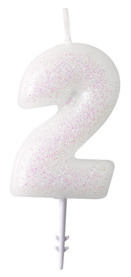 White, Fehér csillámos gyertya 2-es 6,5 cm